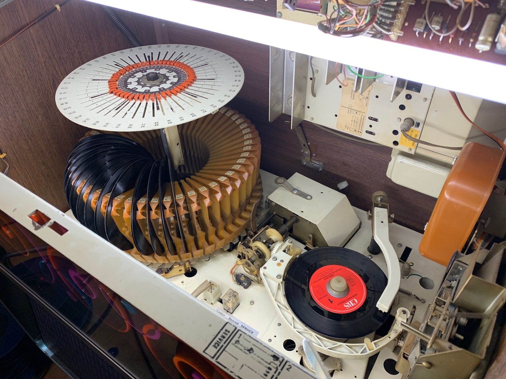 Sie können die Musik der Juke-Box selbst bestimmen und eigene 7“ Vinyl Singles mitbringen.